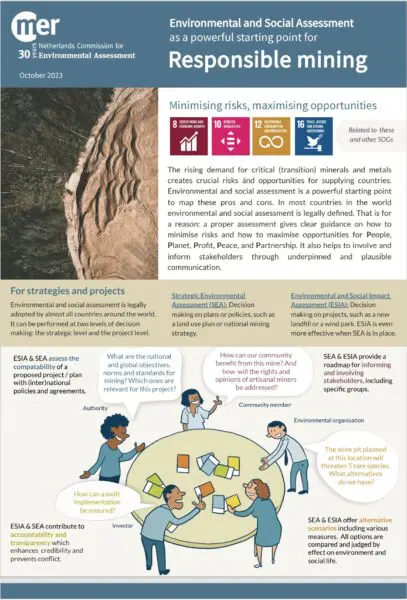 In the coming years, we intend to further explore possible activities with our partners on topics such as improved strategic decision-making on mining through SEA, mining in relation to biodiversity management, and labour conditions and ESIA follow-up.