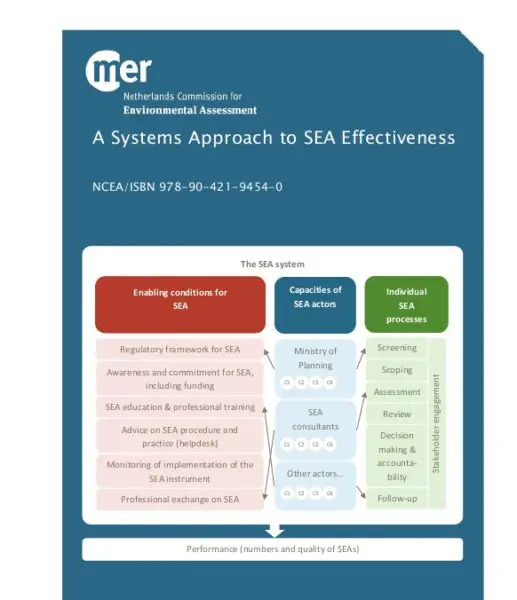 The NCEA defines an ESIA/SEA system as the interaction of individual ESIA and SEA processes, the capacity of organisations with responsibilities in those processes and the quality of a set of ‘enabling conditions’ that are necessary for effective ESIA/SEA practice.
